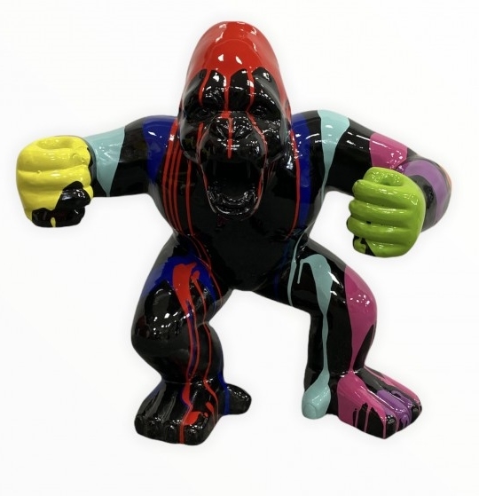 STATUE GORILLE EN RESINE 63 CM - NOIR MULTICOLORE Statue en résine d'un Gorille noir multicolore - Résine fibrée Hauteur 63 cm - Largeur 70 cm Ce modèle résiste à toutes les intempéries vous pouvez donc le placer où bon vous semble. Résiste aux intempéries : Pluie - Gel - UV Fabriqué et peint en Europe.