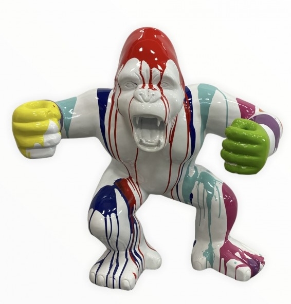 STATUE GORILLE EN RESINE 63 CM - BLANC MULTICOLORE Statue en résine d'un Gorille blanc multicolore - Résine fibrée Hauteur 63 cm - Largeur 70 cm Ce modèle résiste à toutes les intempéries vous pouvez donc le placer où bon vous semble. Résiste aux intempéries : Pluie - Gel - UV Fabriqué et peint en Europe.